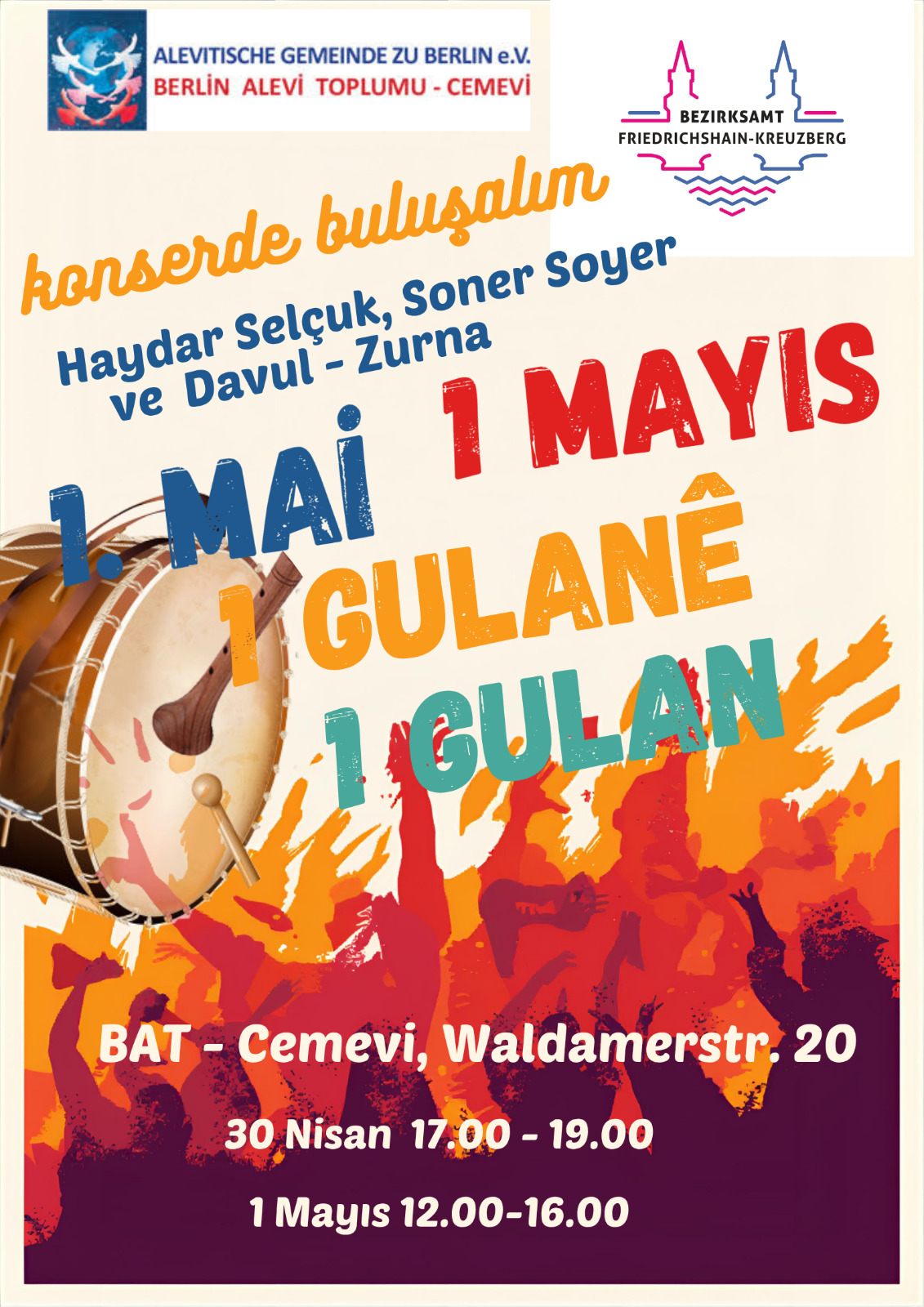 Konzert 1. Mai in Kreuzberg – Internationale Arbeiterlieder in Türkisch, Kurmanci und Zazaki 30.04.2026 – 01.05.2026 Alevitische Gemeinde zu Berlin Zum Projekt