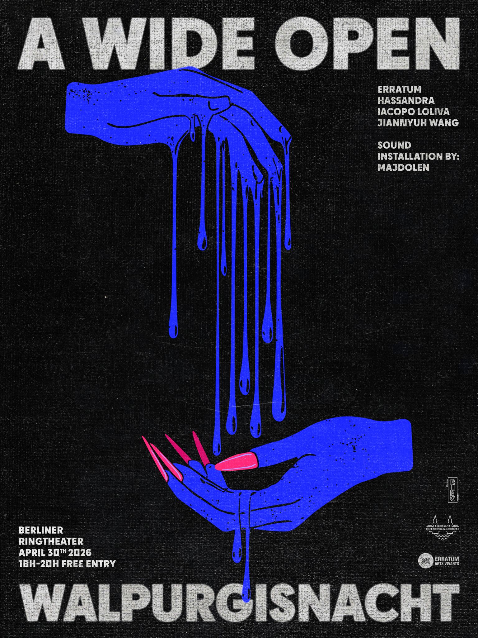 Wide Open’s Walpurgisnacht verwandelt das Berliner Ringtheater im Rahmen des nachbarschaftlichen Hausfestes der Neuen Zukunft in einen Ort, an dem Tanz, Feier und Performance zusammenkommen. Verbunden durch musikalische Narrative von Majdolen’s DJ-Set erkunden die erzählerischen Drag- und Tanzperformances von Hassandra, Iacopo Loliva, Erratum und Jiannyuh Wang von queeren Ritualen der Anrufung der Ahn*innen, Hexerei, Transformationen in ungezähmte Kreaturen und emanzipatorischer Monstrosität.
