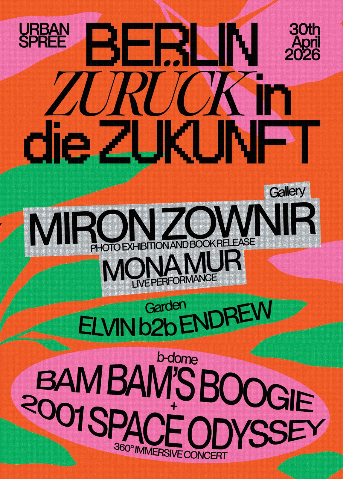 Am Abend des 30.04. eröffnet die Urban Spree Galerie eine Retrospektive des Fotografen Miron Zownir. Das Thema lautet „Berlin 1979–2025“ und umfasst eine Auswahl von Schwarz-Weiß-Fotografien, die sich hauptsächlich mit Kreuzberg seit 1979 befassen. Ein Konzert der legendären Künstlerin Mona Mur ist in der Galerie geplant. Um eine typisch Berliner Verbindung zwischen den Generationen herzustellen, wird außerdem ein modernes Programm mit DJs (im Biergarten) und Konzerten (im Konzertsaal) angeboten.