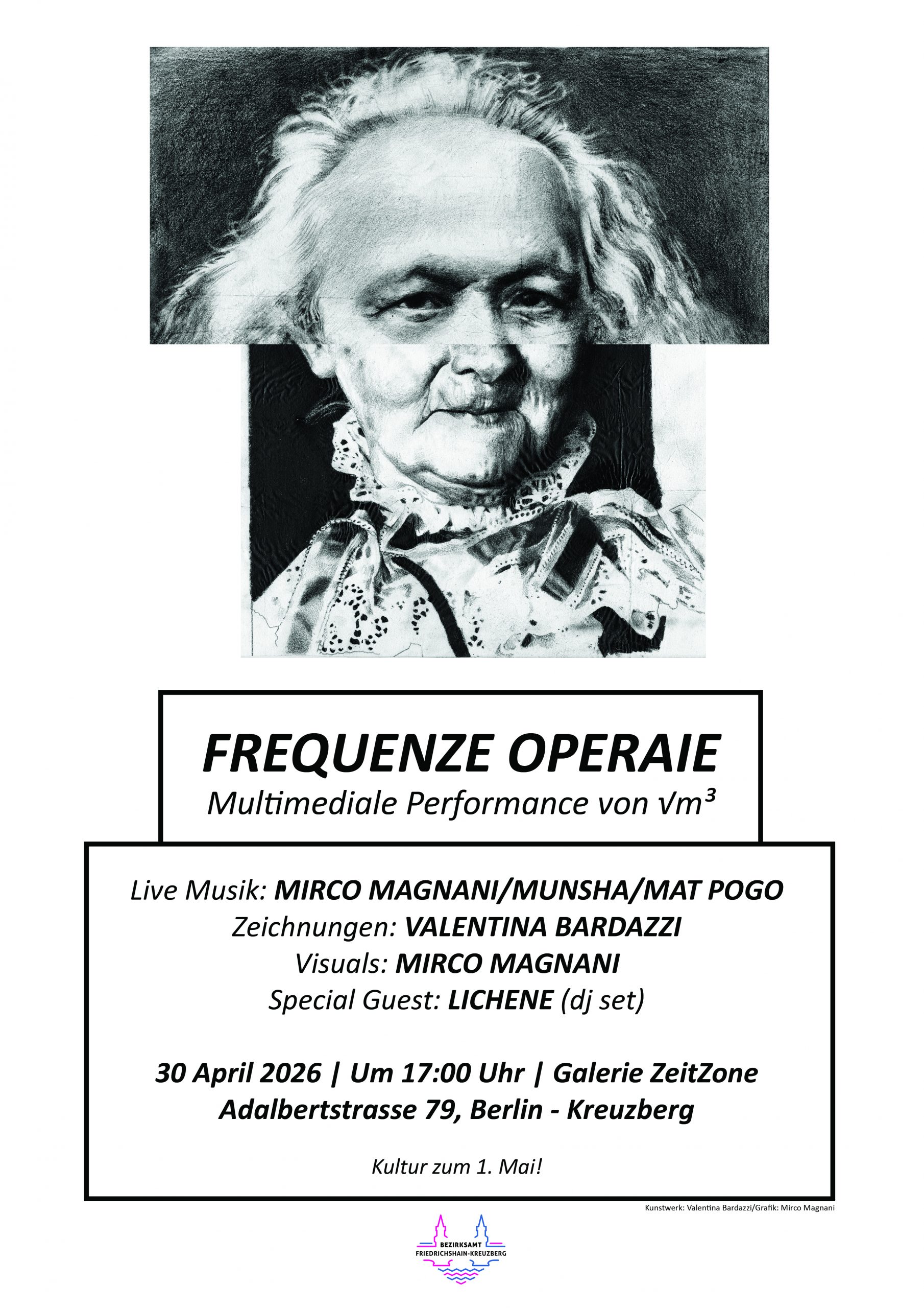 Anlässlich des Tags der Arbeit präsentiert √m³ einen Abend, der eine Ausstellung ikonografischer Komposit-Porträts, Live-Musik-Interventionen und Video-Projektionen verbindet – als solidarischen Akt des Widerstands in einer Bearbeitung des Begriffs „Kampf“.