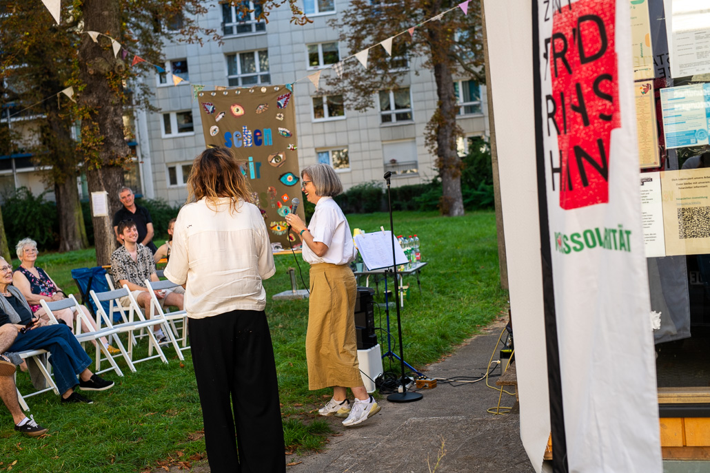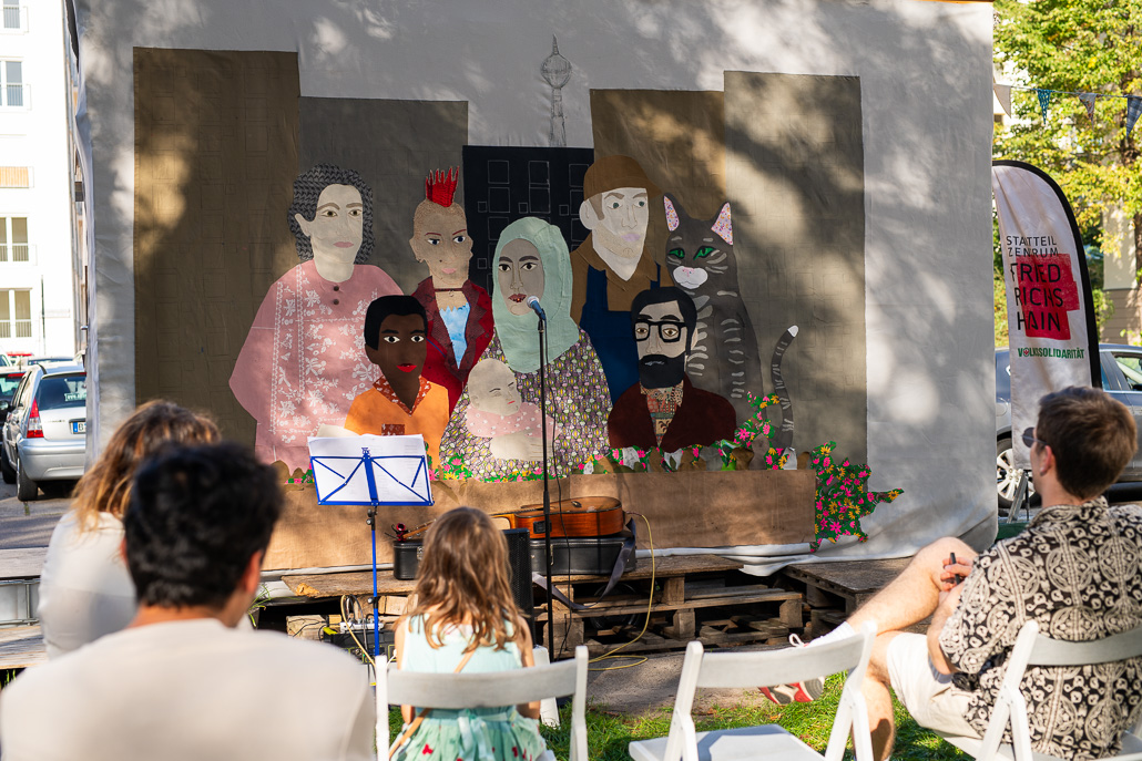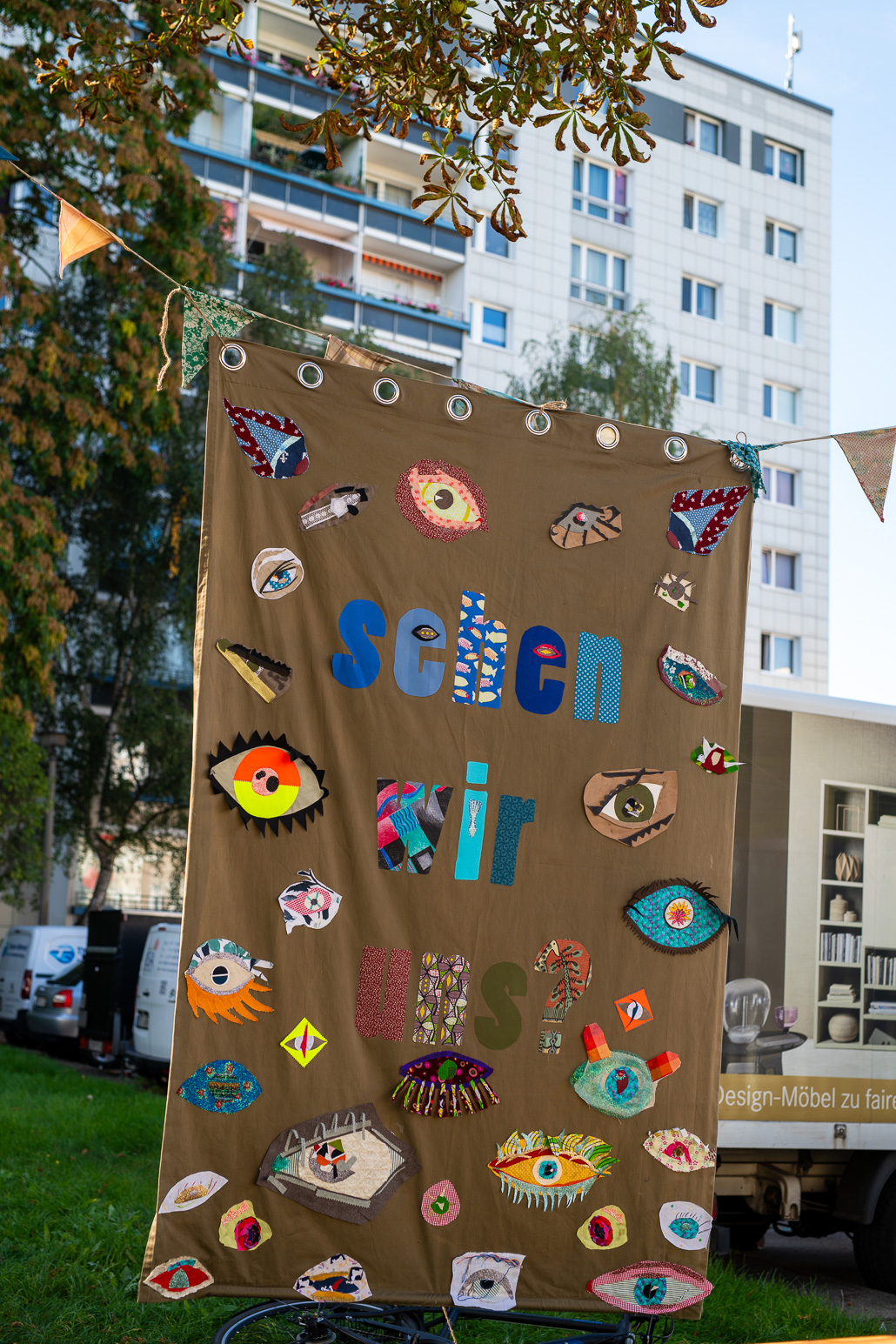 Dieses offene Kunstprojekt lädt Nachbar:innen aus Friedrichshain ein, gemeinsam ein textiles Werk zu schaffen, das sich mit dem Gesehenwerden in der Nachbarschaft beschäftigt. Es geht um Austausch, Verbindung und Fürsorge – sichtbar gemacht durch Stoff, Faden und gemeinsames Tun.