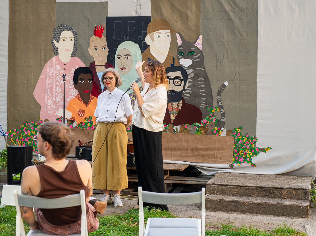Die entstandenen Werke werden das Tiny House am STZ Friedrichshain temporär verwandeln – in eine textile Installation im öffentlichen Raum.